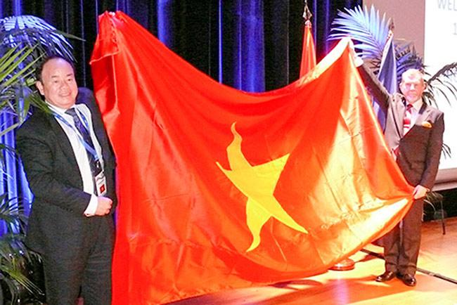 Thượng tướng Phạm Ngọc Minh – Phó Tổng Tham mưu trưởng QĐND Việt Nam kiêm Chủ tịch Ủy ban thủy đạc Việt Nam và ông Robert Ward – Chủ tịch IHO giới thiệu quốc kỳ Việt Nam tới các quốc gia thành viên IHO.