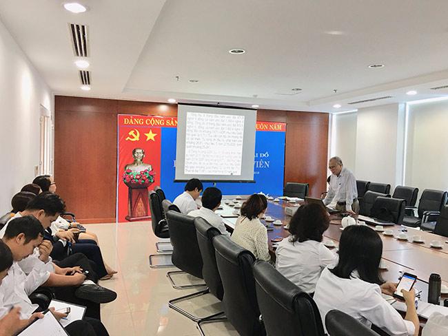 Báo cáo viên Phạm Quốc Văn – nguyên giảng viên Học viện chính trị Quốc Gia trình bày các nội dung quan trọng của Hội nghị lần thứ Tám BCH TW Đảng khóa XII
